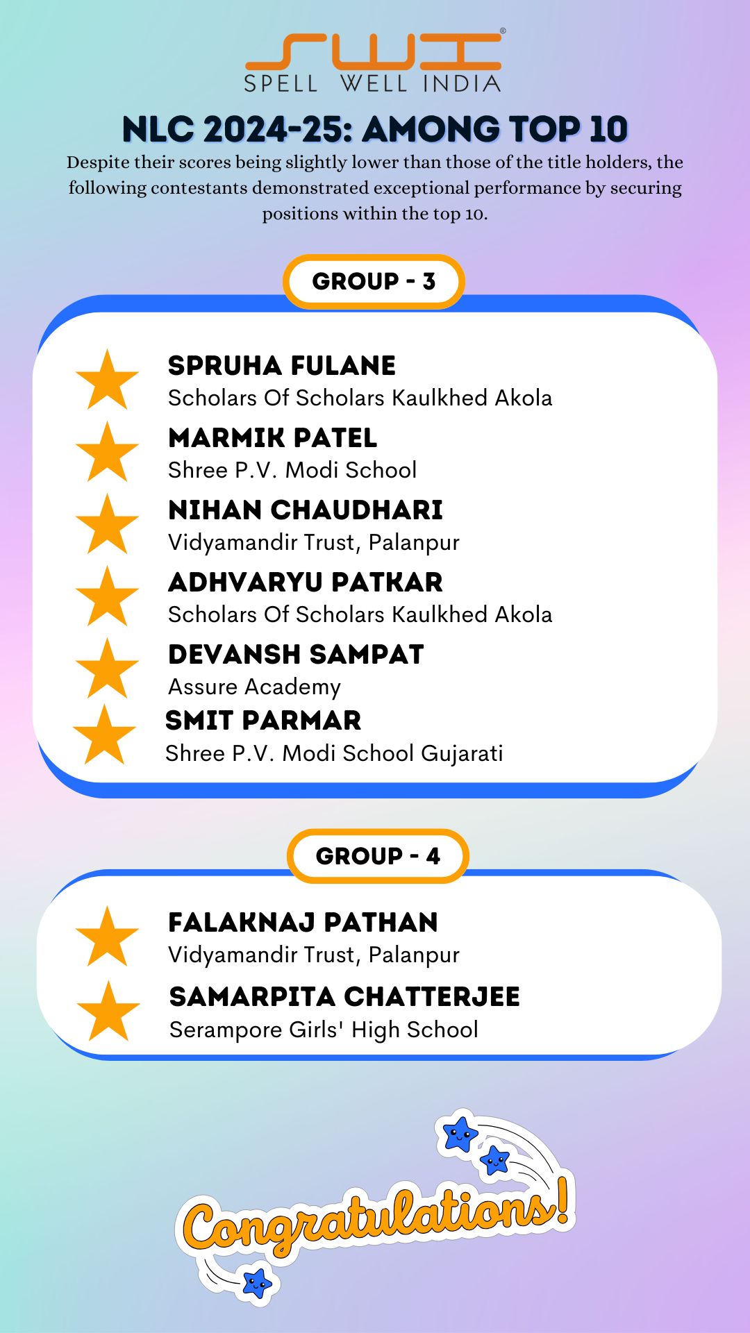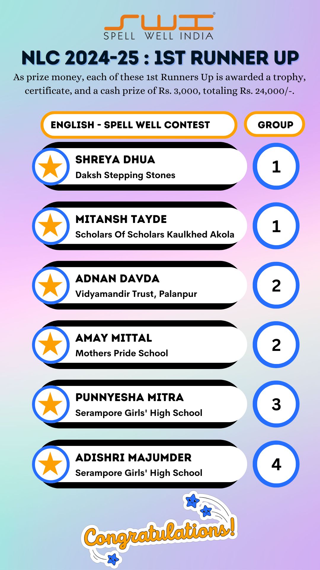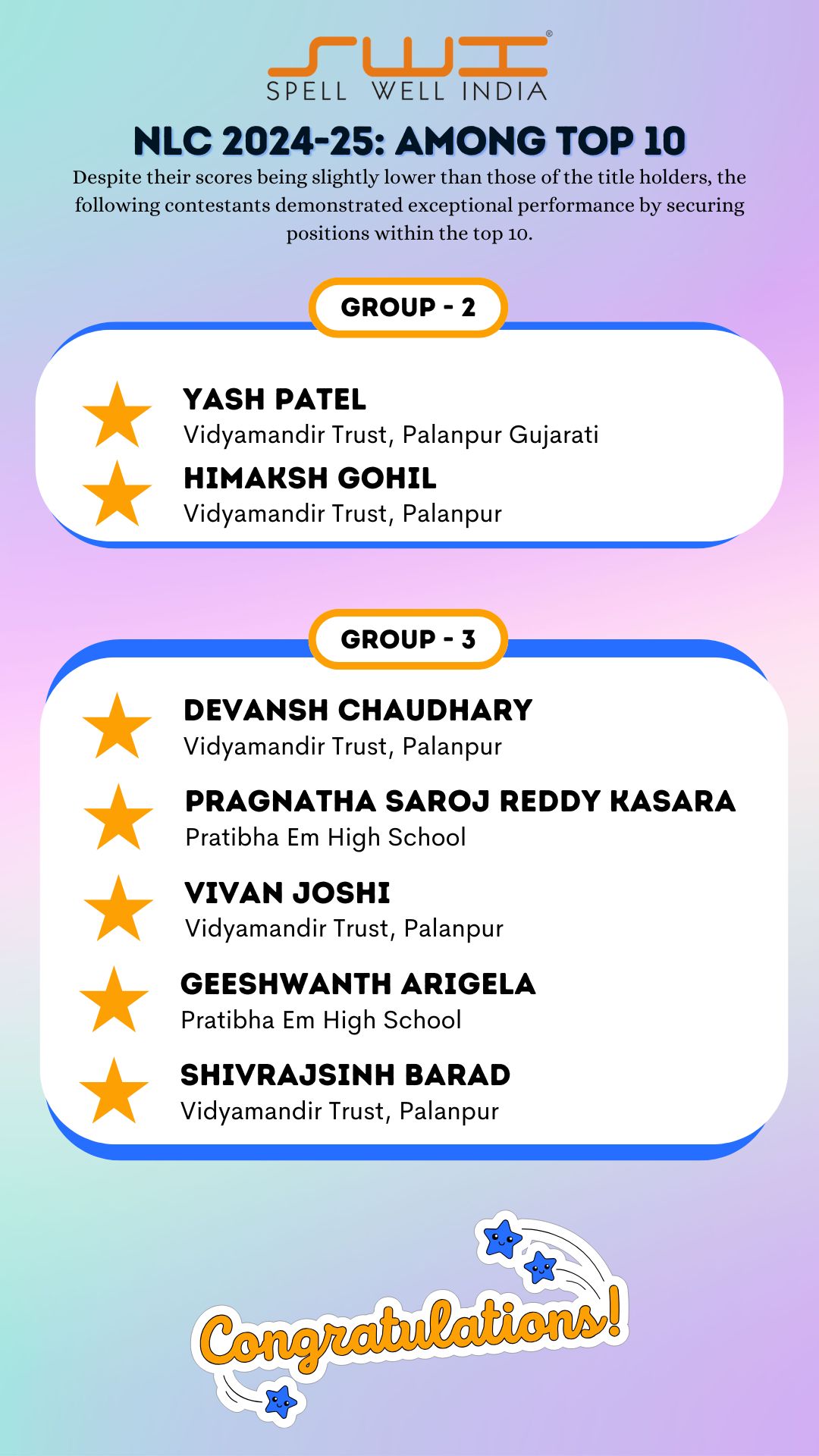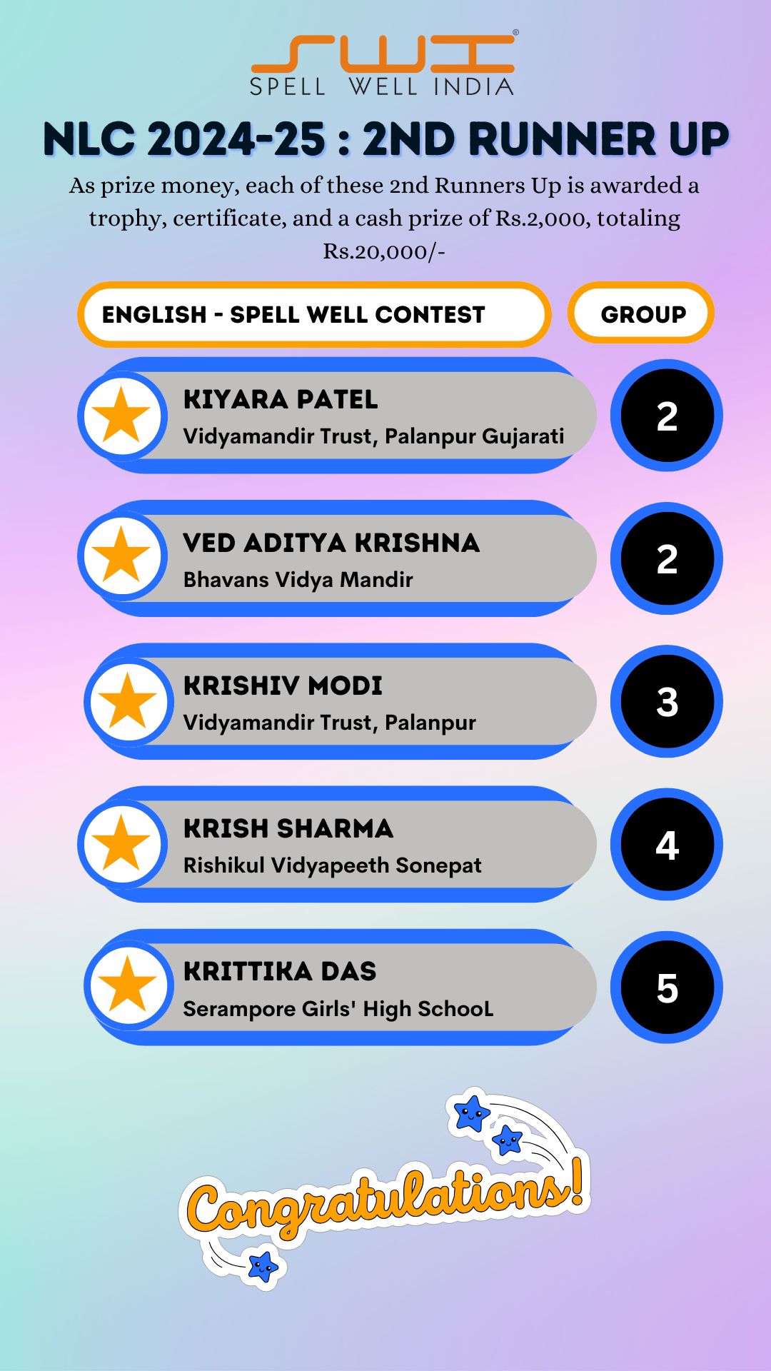 Below is the result of Spell Well India 2024-25 NLC Competition