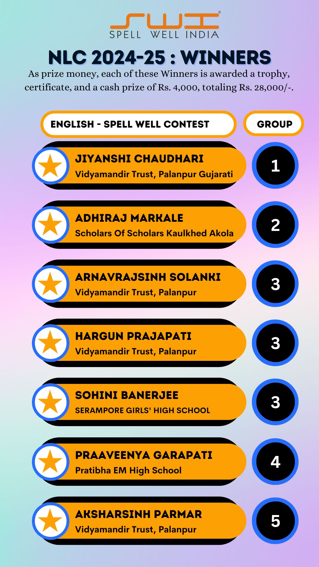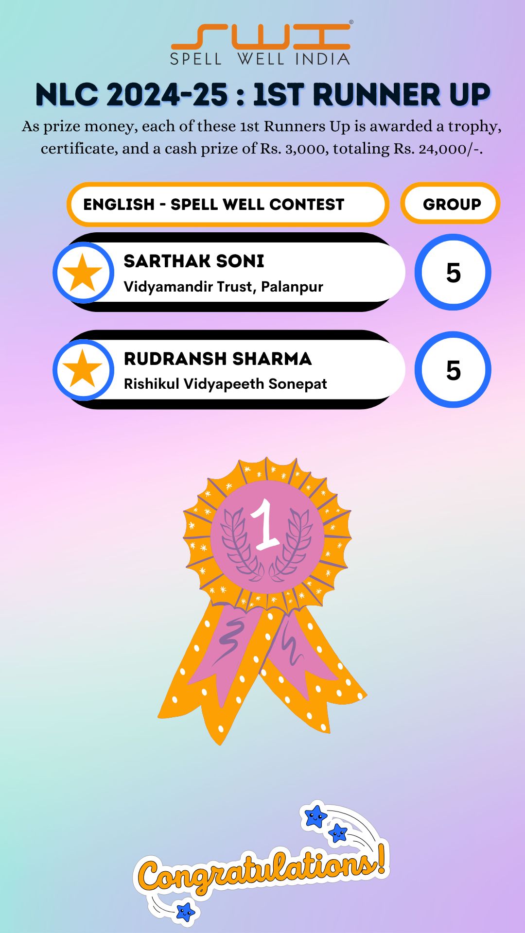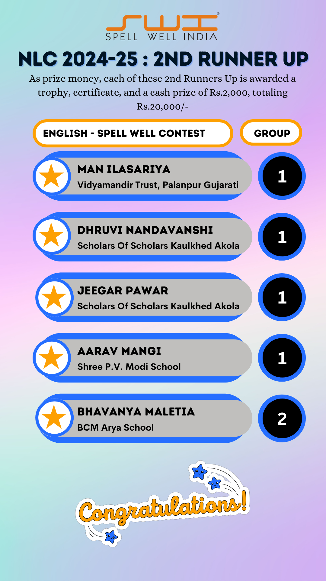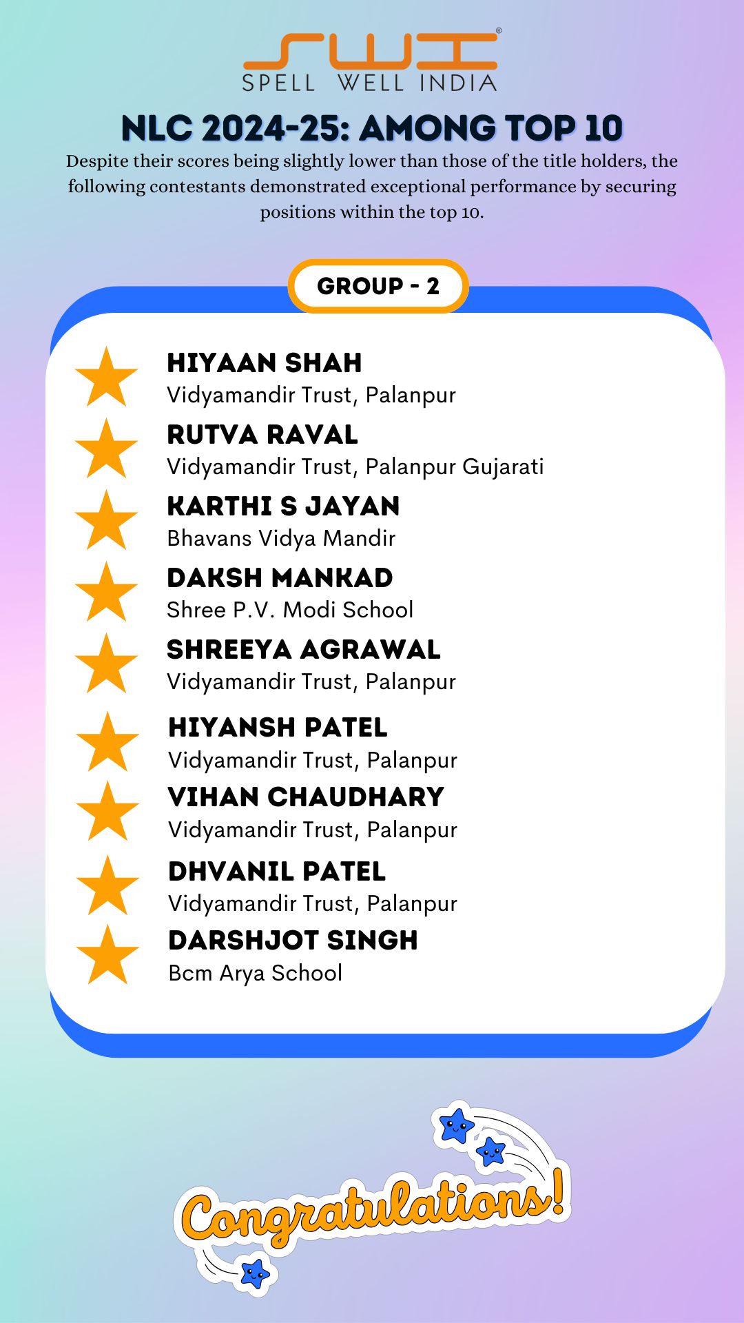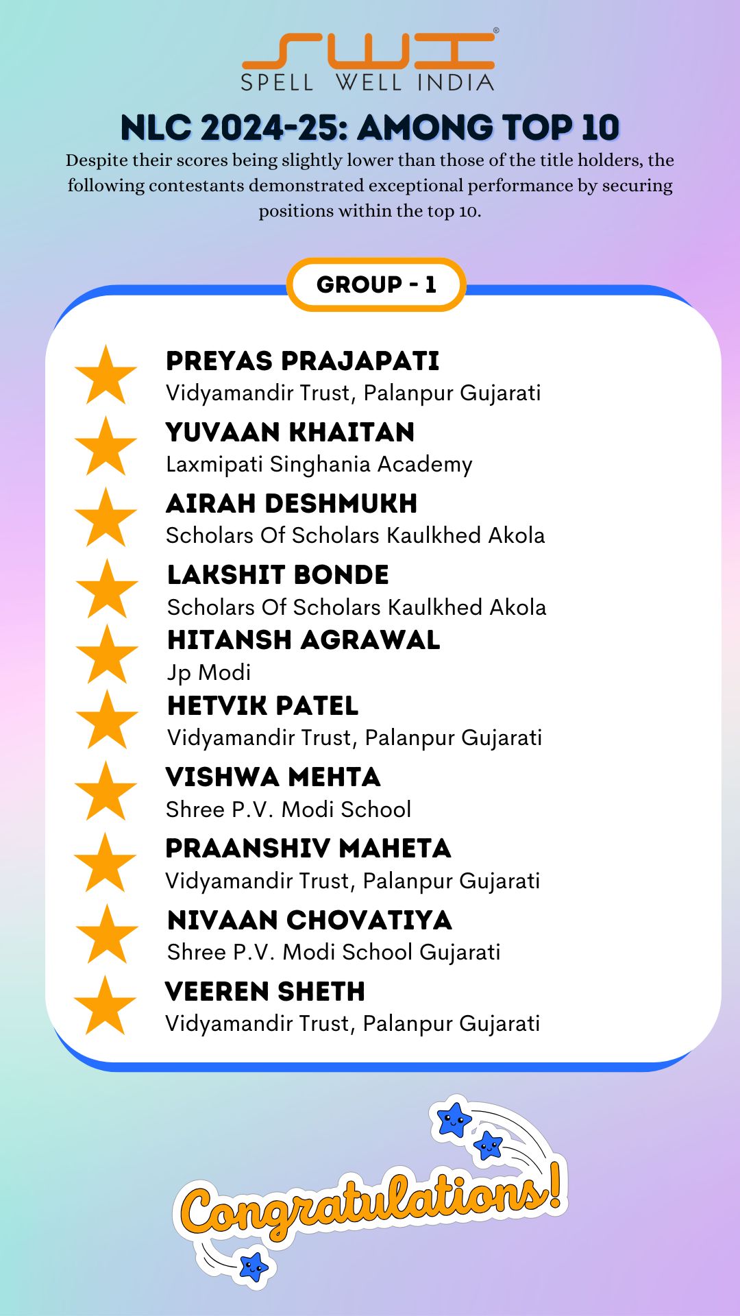 Below is the result of Spell Well India 2024-25 NLC Competition