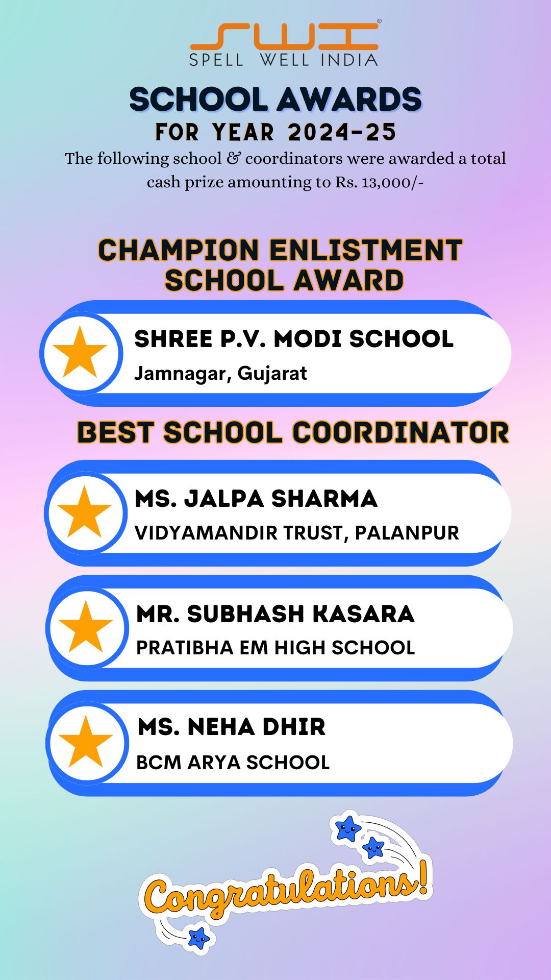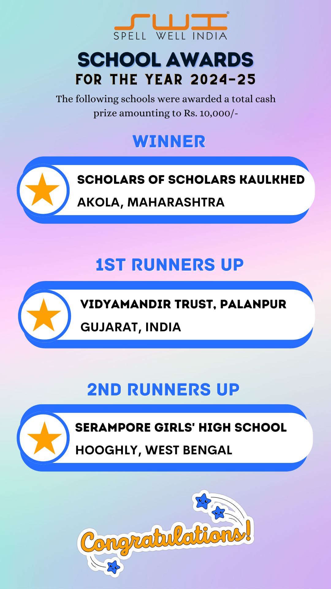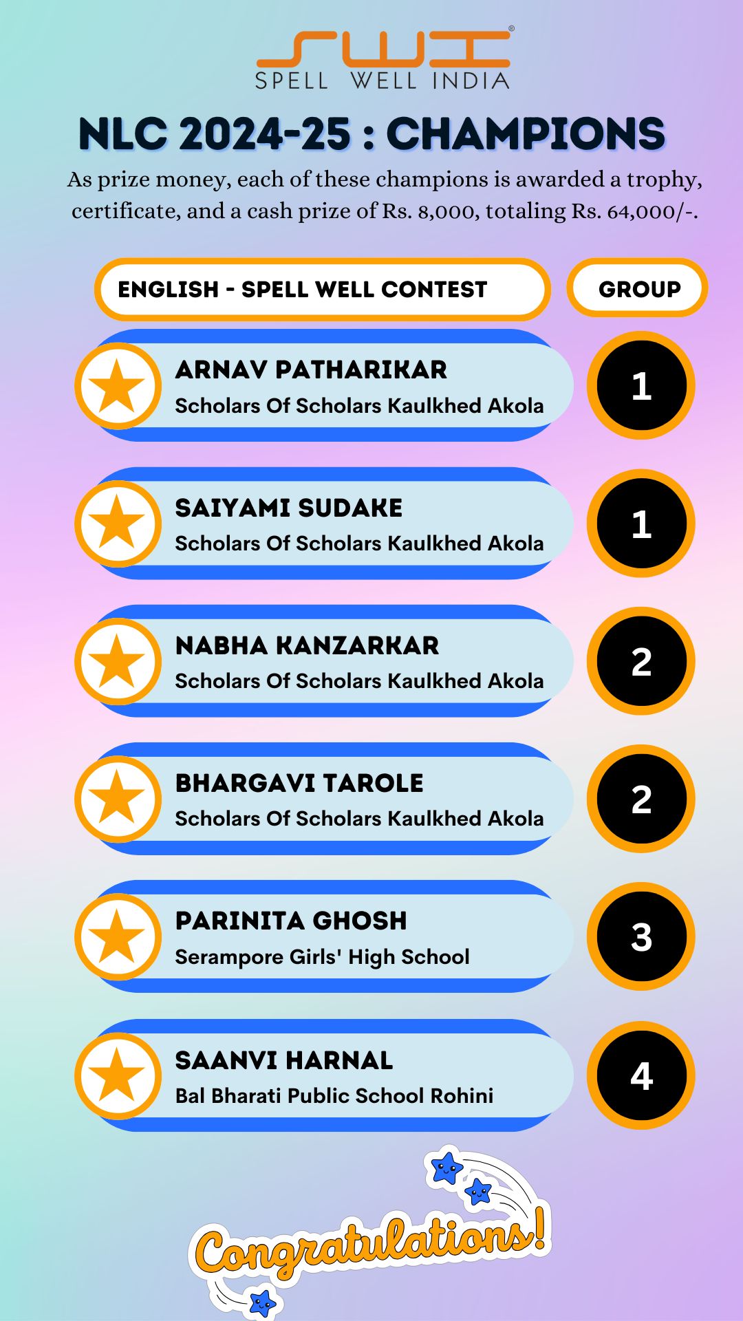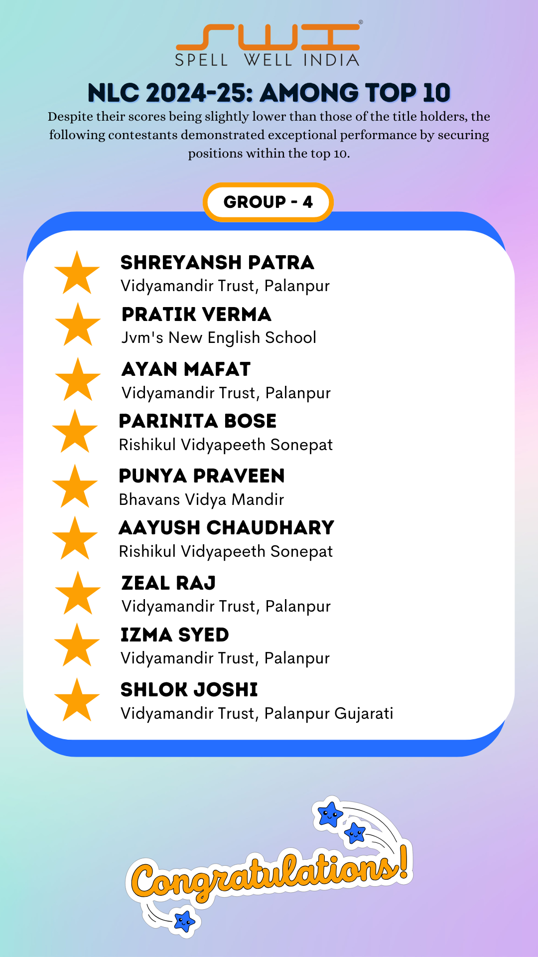 Below is the result of Spell Well India 2024-25 NLC Competition